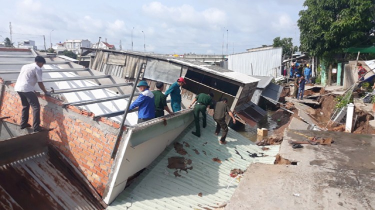 Sạt lở bờ sông tại xã Tân Nhuận Đông, huyện Châu Thành gây thiệt hại hoàn toàn 5 căn nhà của người dân địa phương