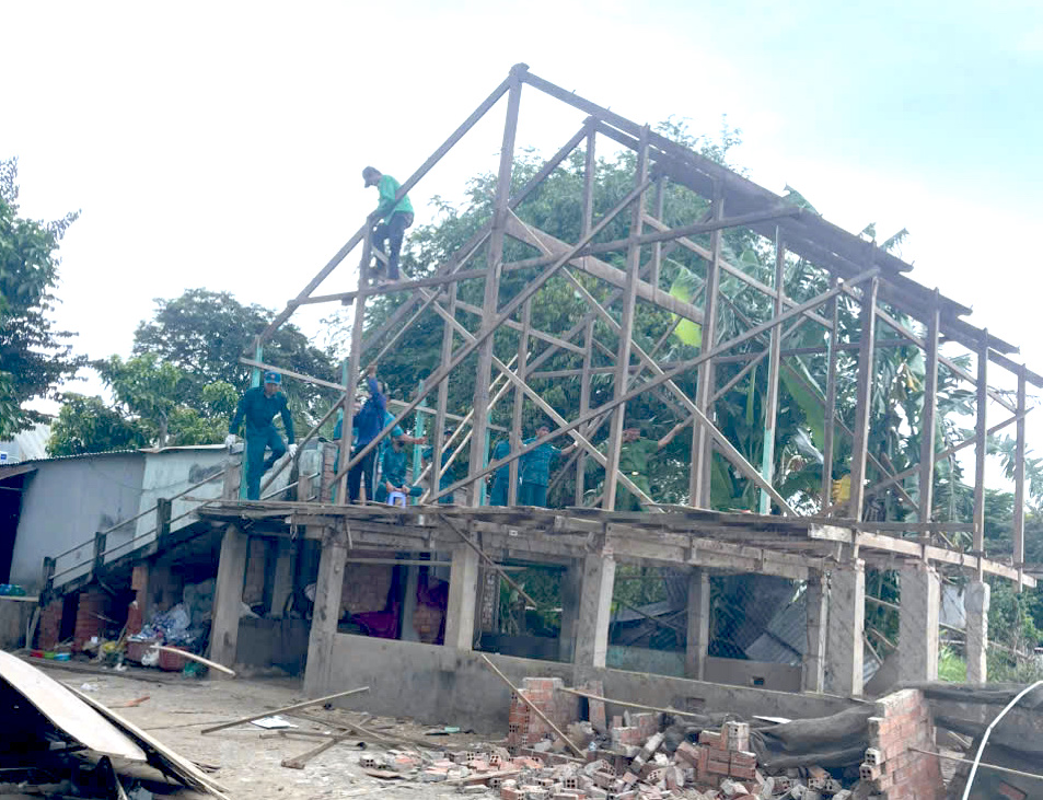 UBND xã Tân Long đã phân công lực lượng dân quân, công an, Ban nhân dân ấp hỗ trợ hộ ông Trần Văn Tham tháo nhà để di dời đến nơi an toàn, đảm bảo tính mạng và tài sản.