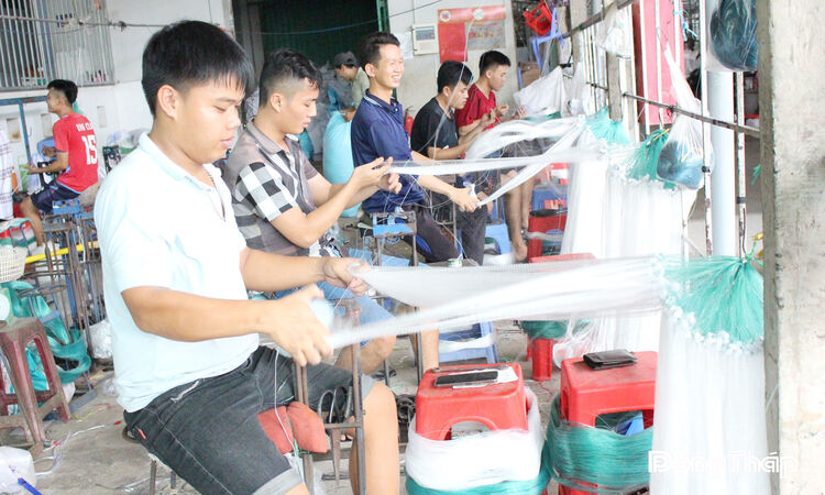 Sản xuất lưới đánh bắt thủy sản ở xã Tân Khánh Trung.