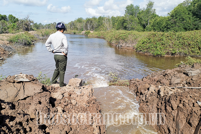 Mở đường nước cứu rừng phòng hộ. Ảnh: Hạt Kiểm lâm TX. Vĩnh Châu cung cấp