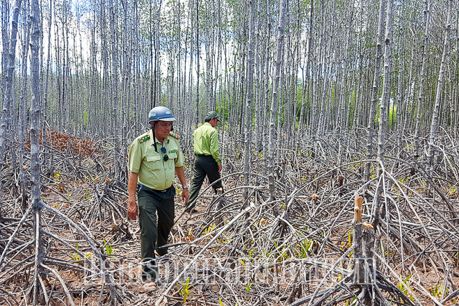 Theo ước tính của ngành chức năng, hơn 1,5ha rừng phòng hộ ở xã Vĩnh Hải đã và đang bị chết khô do thiếu nước từ nhiều tháng qua. Một số diện tích rừng bị thiệt hại cũng đứng trước nguy cơ dễ cháy do đang là thời điểm nắng nóng, nhiều cây chết khô, lớp thực bì trong rừng lại dày. Do đó, ngành chuyên môn của tỉnh và UBND TX. Vĩnh Châu đã họp bàn, nghiên cứu các giải pháp cứu rừng.