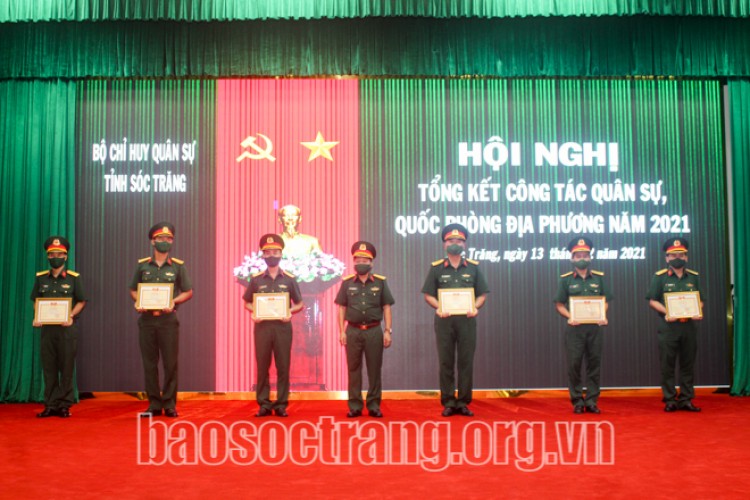 Bộ CHQS tỉnh Sóc Trăng khen thưởng cho tập thể, cá nhân có thành tích xuất sắc trong công tác. Ảnh: T.H