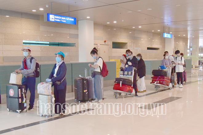Các công dân được tiếp nhận và làm thủ tục tại sân bay Cần Thơ. Ảnh: Thanh Nam