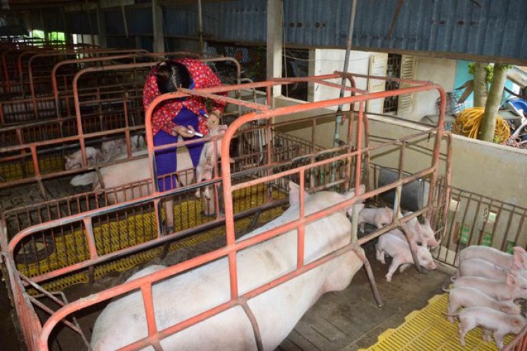 Người dân Cù Lao Dung tích cực tiêm ngừa nhằm tránh lây lan trên đàn lợn.