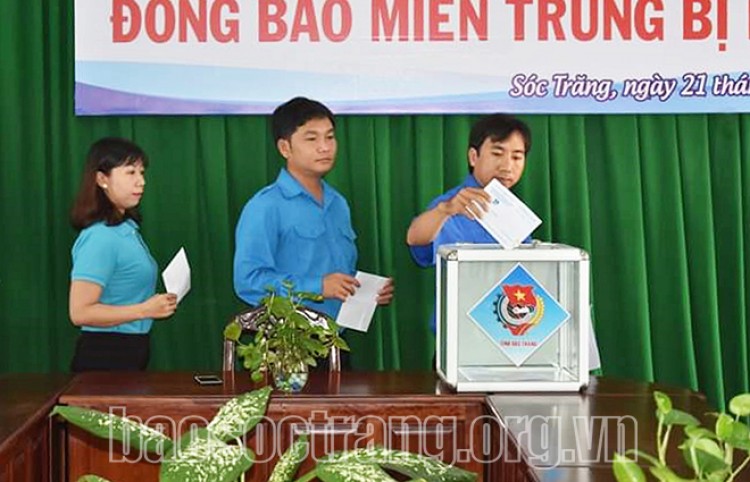 Đoàn viên, thanh niên Sóc Trăng ủng hộ đồng bào miền Trung bị thiên tai. Ảnh: Ngọc Diễm