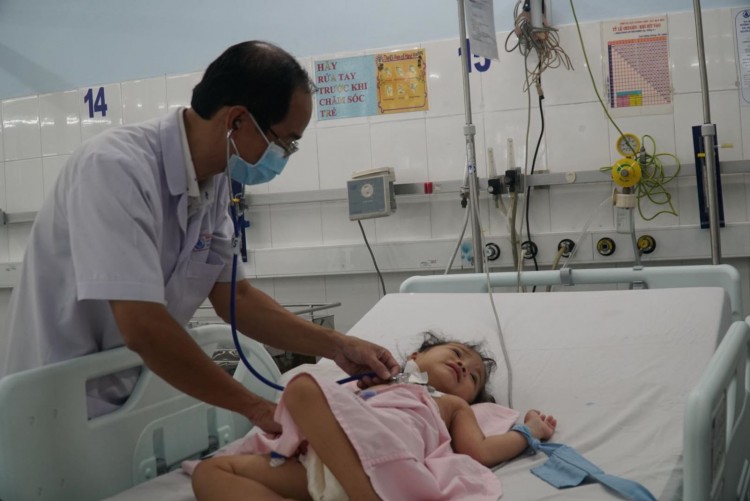 Ngày 17-8, PGS.TS Phạm Văn Quang, Trưởng khoa Hồi sức tích cực chống độc Bệnh viện Nhi đồng 1 (TP Hồ Chí Minh) cho biết bệnh nhi L.T.K.Ng (3 tuổi, cân nặng 11kg, ngụ TP Mỹ Tho, Tiền Giang) bệnh nhi được chuyển vào khoa cấp cứu bệnh viện lúc 23 giờ ngày 5-8 trong tình trạng hôn mê, môi tím, trụy tim mạch nặng, tim rời rạc. Bé được các bác sĩ chẩn đoán viêm cơ tim tối cấp, sốc tim, rối loạn nhịp tim.