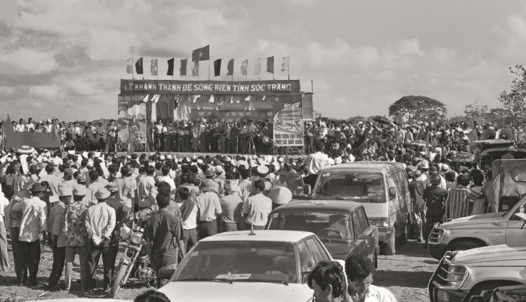 Lễ Khánh thành hoàn thành hệ thống đê sông, đê biển tỉnh Sóc Trăng ngày 28-4-1994. Ảnh: Ngọc Nhuần