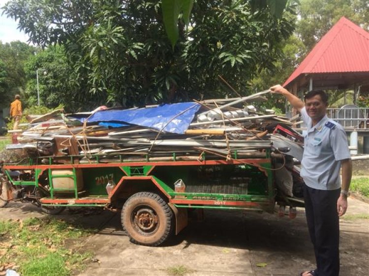Tại đây, tổ công tác đã phát hiện ông Chhun Net, quốc tịch Campuchia đang vận chuyển 1,3 tấn sắt phế liệu qua biên giới. Sau đó 30 phút, lúc 10h30, tổ công tác phát hiện ông Khiev Pon, quốc tịch Campuchia đang vận chuyển 700kg sắt phế liệu qua biên giới. Hai đối tượng này đều không có giấy tờ chứng minh nguồn gốc hợp pháp số phế liệu đang vận chuyển, xe vận chuyển phế liệu là xe Campuchia.