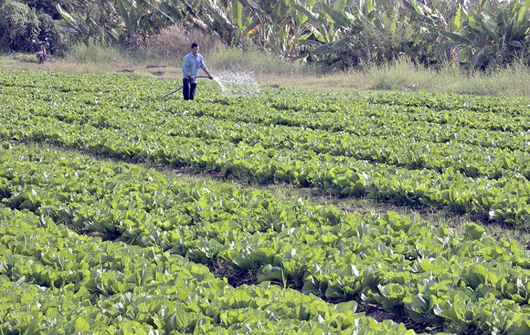 Nông dân phường Thới An Đông chăm sóc rau màu trồng vụ Tết.