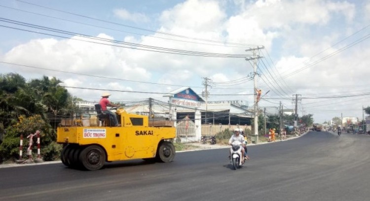 Đơn vị thi công đang khẩn trương đẩy nhanh tiến độ nâng cấp, thảm nhựa mặt đường tuyến QL1 đoạn qua TX. Giá Rai, tỉnh Bạc Liêu