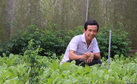 Bên luống cải ngọt xanh mơn mởn, chú chia sẻ: “Mô hình này chi phí đầu tư thấp, ít sâu bệnh, công chăm sóc cũng không cực lắm mà cho hiệu quả khả quan.
