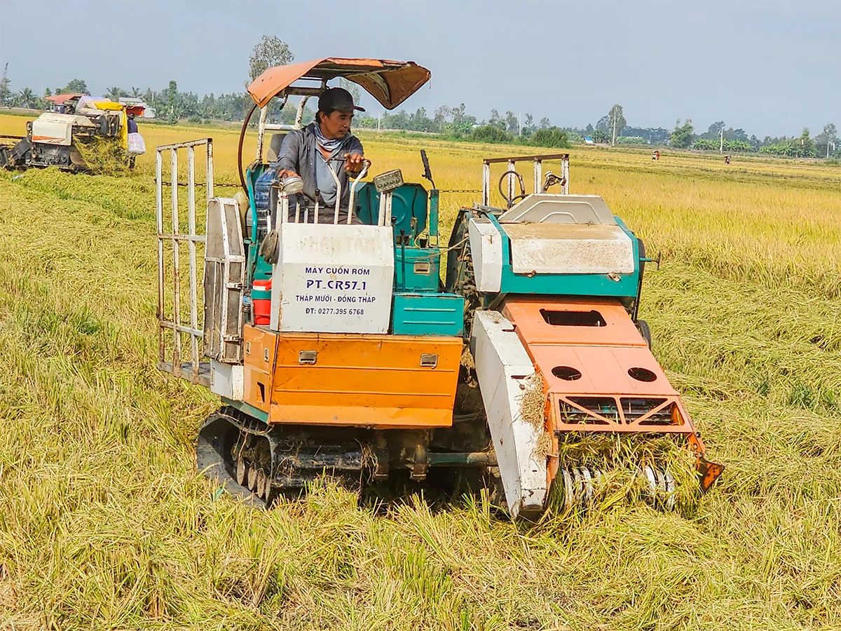Các địa phương vùng ĐBSCL phát triển nhiều mô hình trồng trọt giảm phát thải, nhất là trong sản xuất lúa. Trong ảnh: Mô hình sản xuất lúa chất lượng cao và phát thải thấp ở xã Thạnh Phú, TP Cần Thơ.