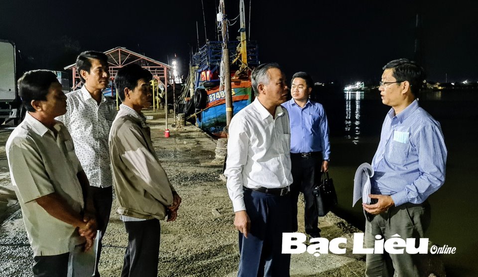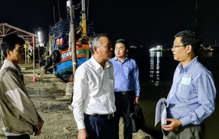 Thứ trưởng Bộ NN&PTNT - Phùng Đức Tiến (thứ hai thừ phải qua) kiểm tra thực tế tại Cảng cá Gành Hào. Ảnh: M.Đ