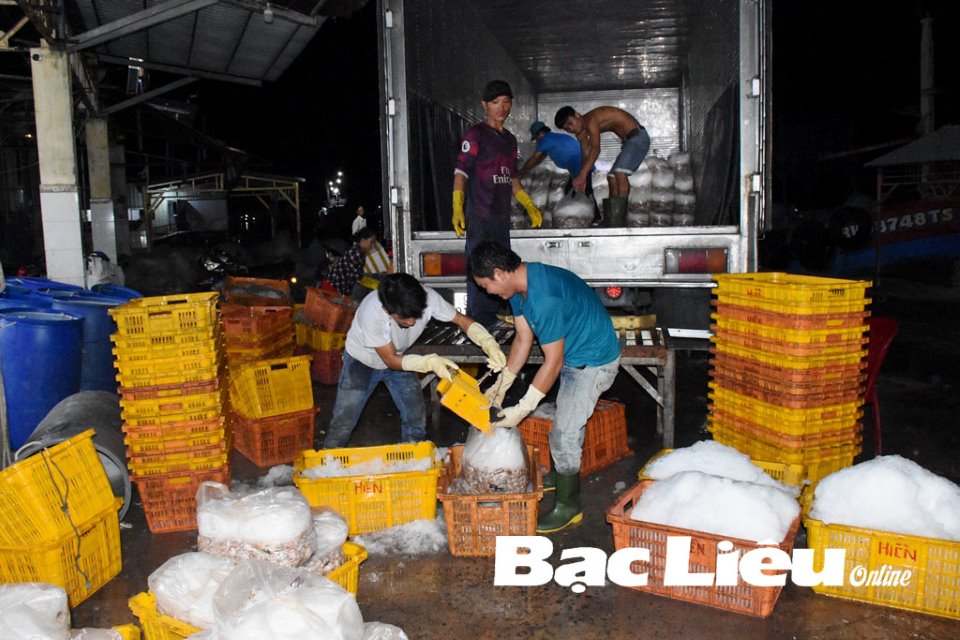 Ngư dân phân loại hải sản tại Cảng cá Gành Hào. Ảnh: M.Đ