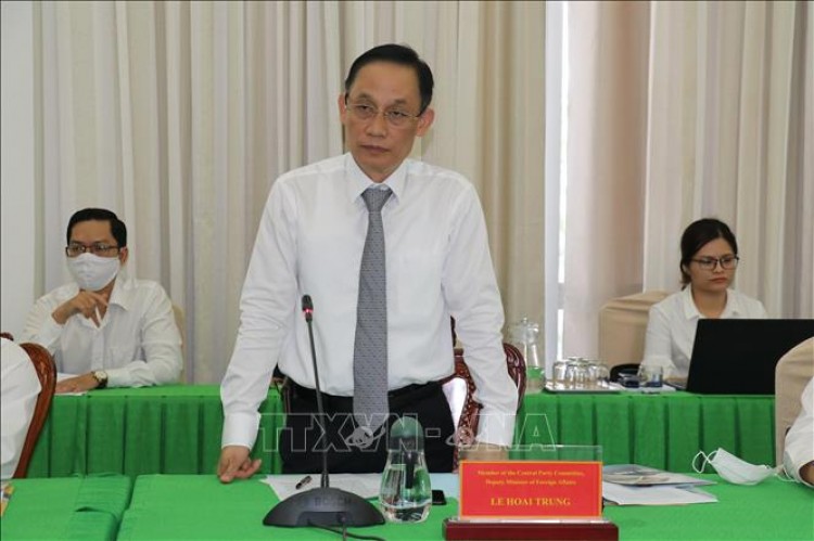 Thứ trưởng Bộ Ngoại giao Lê Hoài Trung phát biểu tại buổi làm việc.