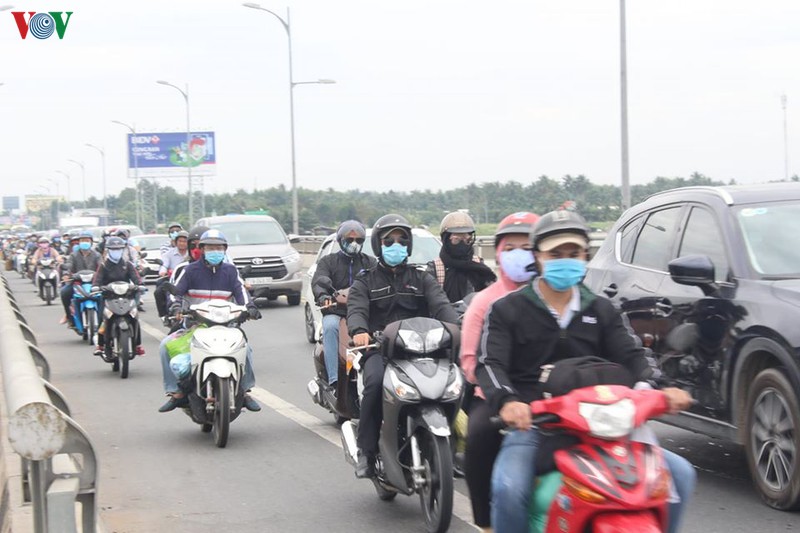 Người dân Tiền Giang ra đường đều mang khẩu trang để phòng dịch Covid-19.