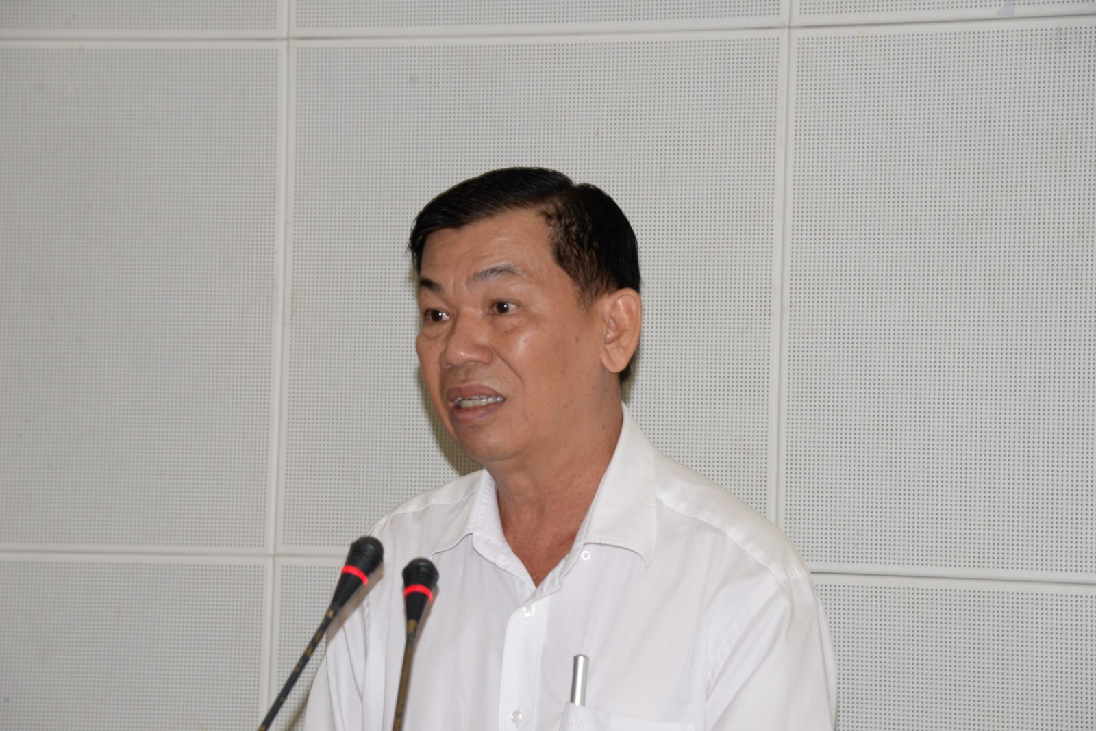 Đồng chí Nguyễn Văn Mẫn thông tin tại cuộc họp.
