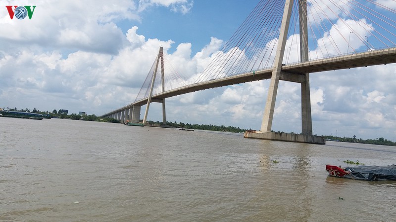 Nước mặn 2 phần nghìn đã tấn công tới khu vực cầu Rạch Miễu, Tp. Mỹ Tho.