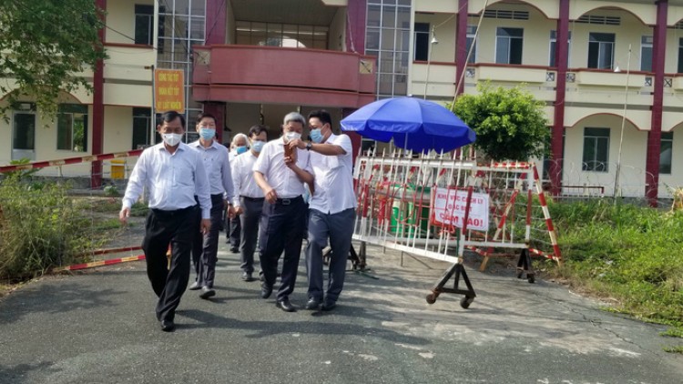 Chủ tịch UBND tỉnh Tiền Giang Nguyễn Văn Vĩnh (bìa trái) kiểm tra công tác chống dịch