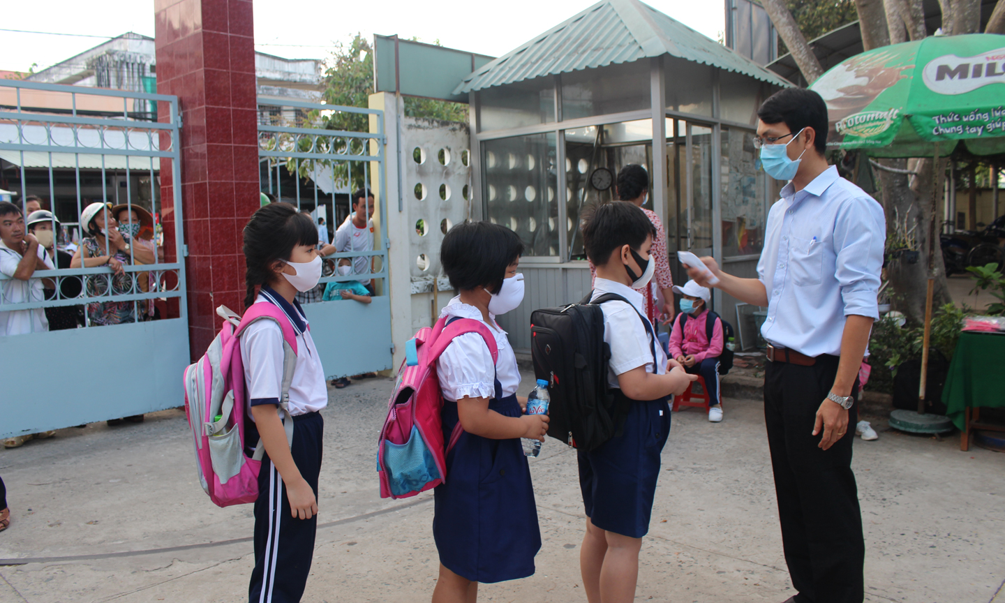 Trong sáng nay, các trường học tỉnh Tiền Giang đã đón trên 137 nghìn học sinh Tiểu học, trên 98 nghìn học sinh THCS và trên 45 nghìn học sinh THPT sẽ trở lại trường sau kỳ nghỉ phòng chống dịch bệnh Covid-19.