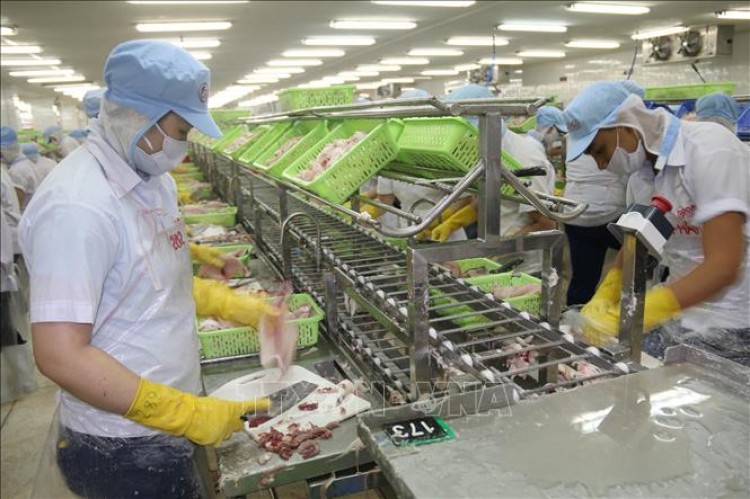 Chế biến thủy sản xuất khẩu tại Khu công nghiệp Mỹ Tho, tỉnh Tiền Giang. Ảnh: Minh Trí/TTXVN
