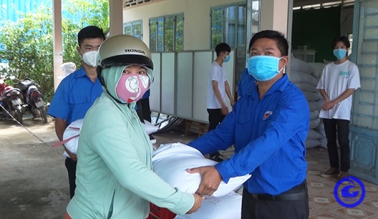 Huyện Cái Bè cấp phát gạo hỗ trợ cho các đối tượng gặp khó khăn do dịch COVID-19. Ảnh: tiengiang.gov.vn
