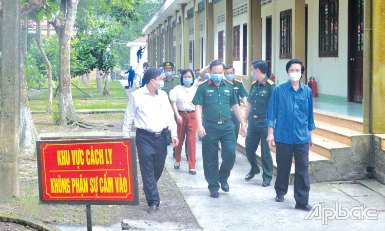 Đồng chí Nguyễn Văn Danh (đi đầu, bìa phải), Ủy viên Ban Chấp hành Trung ương Đảng, Bí thư Tỉnh ủy, Chủ tịch HĐND tỉnh Tiền Giang cùng Đoàn công tác đến kiểm tra công tác chuẩn bị khu cách ly tập trung tại Trung đoàn 924 (xã Phú Cường, huyện Cai Lậy). Ảnh: CAO THẮNG