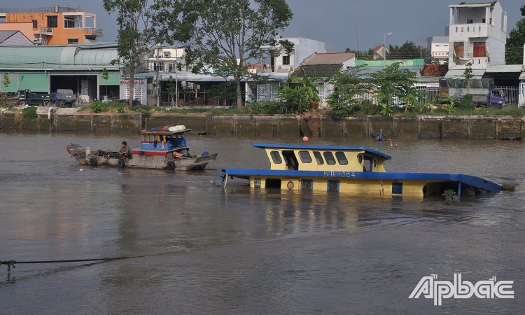 Khi phương tiện đến đoạn gần cầu Chợ Gạo, thuộc địa phận khu 2, thị trấn Chợ Gạo, huyện Chợ Gạo thì bị chìm. Lúc này, thuyền trưởng Được và một thuyền viên khác vội cho sà lan quay đầu lại tấp sát vào phía bờ bên trái theo hướng từ TP. Hồ Chí Minh - miền Tây để tránh gây ùn tắc giao thông.