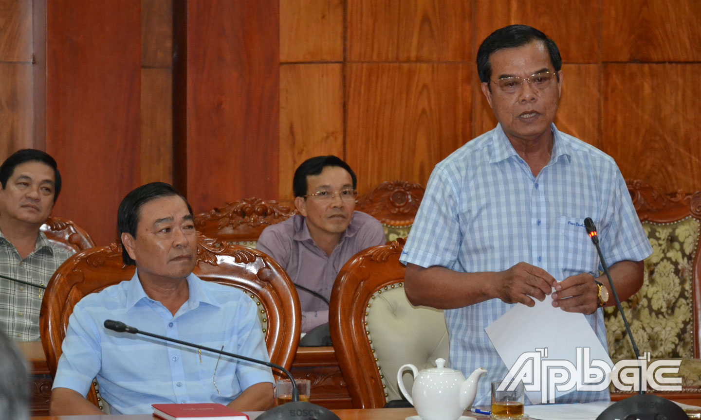 Chủ tịch UBND tỉnh Tiền Giang Lê Văn Hưởng phát biểu tại buổi làm việc.