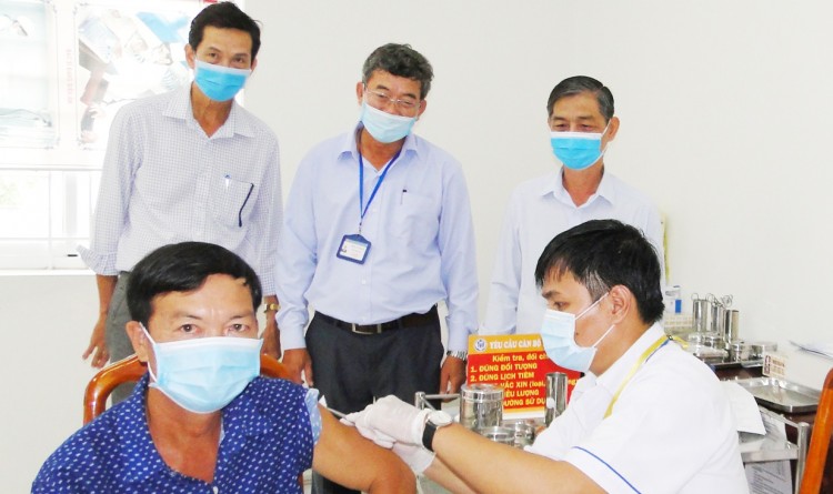 Đối tượng tiêm vắc xin phòng Covid-19 đợt 1 là người được chọn từ nhóm đối tượng thuộc lực lượng tuyến đầu phòng, chống dịch trên địa bàn tỉnh, bao gồm: Người làm việc trong các cơ sở y tế; người tham gia phòng, chống dịch, thành viên Ban Chỉ đạo phòng, chống dịch Covid-19 các cấp; người được phân công làm việc tại Bệnh viện Dã chiến số 1 của tỉnh, khu cách ly y tế tập trung tại Tiểu đoàn Ấp Bắc, Khách sạn Quảng trường Mỹ Tho; người làm nhiệm vụ truy vết, điều tra dịch tễ tại cộng đồng, tình nguyện viên, phóng viên.
