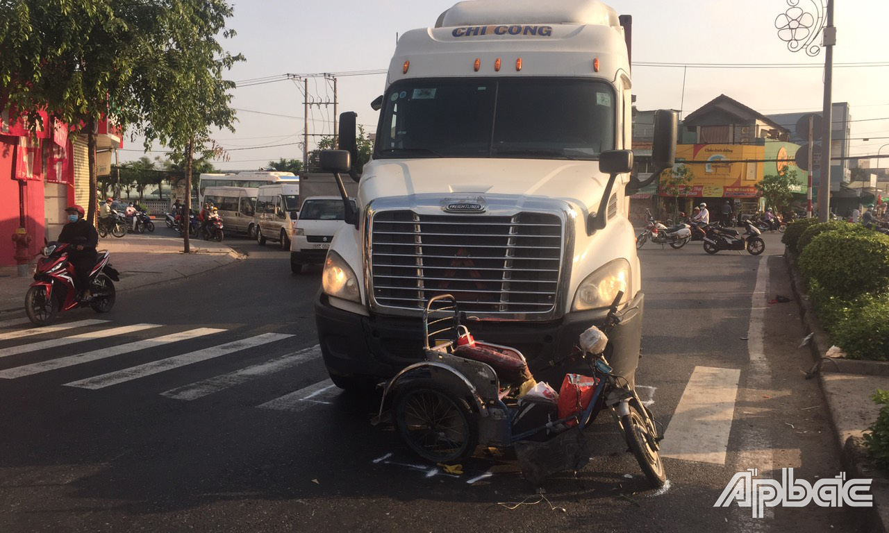 Theo thông tin ban đầu, khoảng 7 giờ 30 phút ngày 7-3, xe container mang biển kiểm soát 71R-000.76 do tài xế Huỳnh Văn Tâm (32 tuổi, ngụ xã Long Hòa, huyện Châu Thành, tỉnh Trà Vinh) lưu thông theo hướng từ vòng xoay Trung Lương vào nội ô TP. Mỹ Tho.