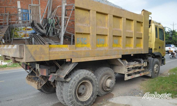 Theo ghi nhận ban đầu, vào thời điểm trên xe ben mang biển kiểm soát 63C 113-14 lưu thông trên Quốc lộ 50 hướng về Quảng trường Trung tâm tỉnh thì bị nổ lốp. Bánh xe văng ra va chạm vào ô tô 63A 092-09 đang đậu trước cửa, rồi tiếp tục bay thẳng vào nhà xưởng của một doanh nghiệp hàn sắt (địa chỉ số 999, tổ 9, Quốc lộ 50, TP. Mỹ Tho) trúng vào một công nhân đang làm việc cách đường lộ gần 30 m.