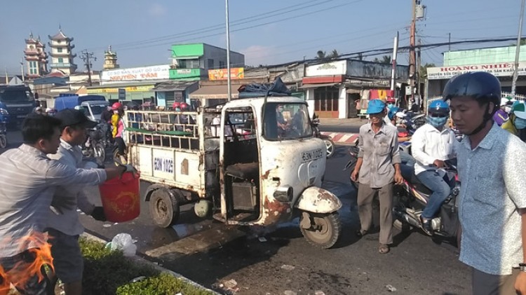 Khoảng 15 giờ 50 ngày 9.4, xe lam BS 63N - 1025 chở than đá lưu thông trên QL1, theo hướng từ TP.HCM về miền Tây. Khi đến đoạn đèn tín hiệu giao thông tại ngã tư Lương Phú (thuộc địa bàn xã Thân Cửu Nghĩa, H.Châu Thành, Tiền Giang), phần máy phía dưới ghế ngồi của tài xế bất ngờ bốc khói.