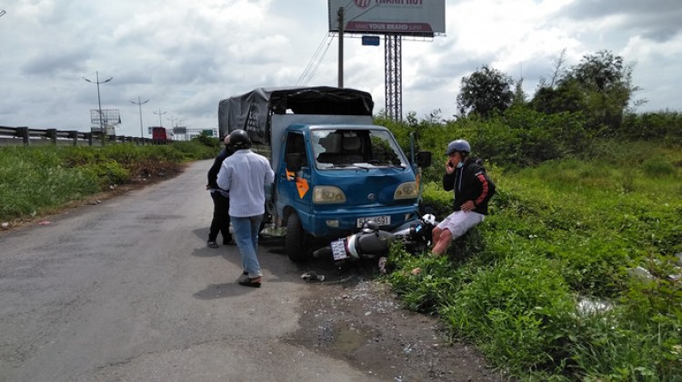Cú tông mạnh khiến người và phương tiện ngã xuống đường, xe máy kẹt dưới gầm xe tải, người phụ nữ bị thương nặng được tài xế xe tải đưa đi cấp cứu trong tình trạng nguy kịch. Nam thanh niên bị thương nhẹ ở chân.