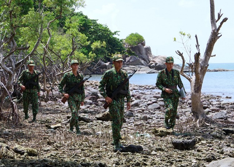 Các chiến sĩ thuộc Bộ đội Biên phòng Hòn Khoai tuần tra quanh cụm đảo Hòn Khoai. (Ảnh: Lê Khoa - BĐBP Cà Mau)