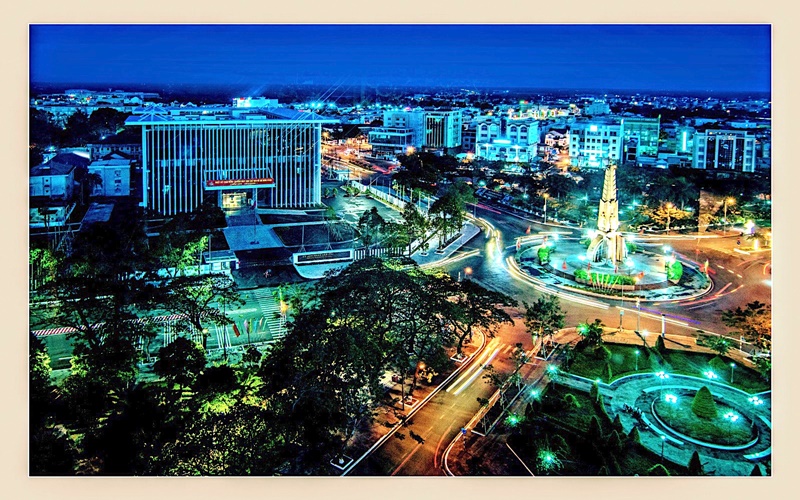 Một góc đô thị TP Cà Mau lung linh về đêm. (Ảnh: NSNA Tạ Hoàng Nguyên)