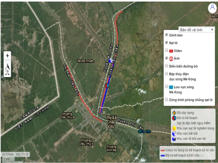 Bản đồ điểm sạt lở bờ Sông Hậu, xã Châu Phong, thị xã Tân Châu. Ảnh chụp từ Cổng thông tin điện tử Tổng cục phòng chống thiên tai