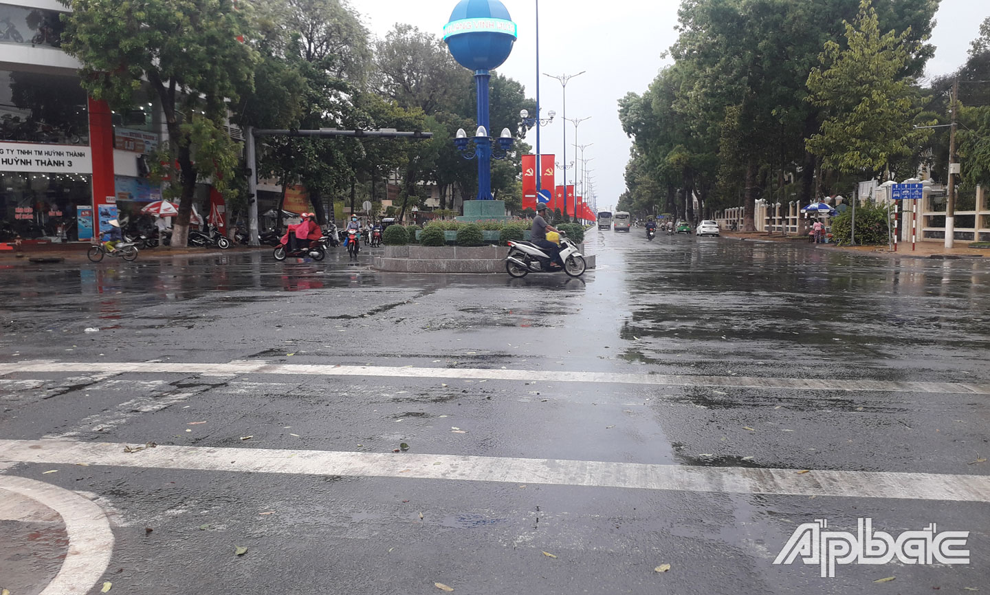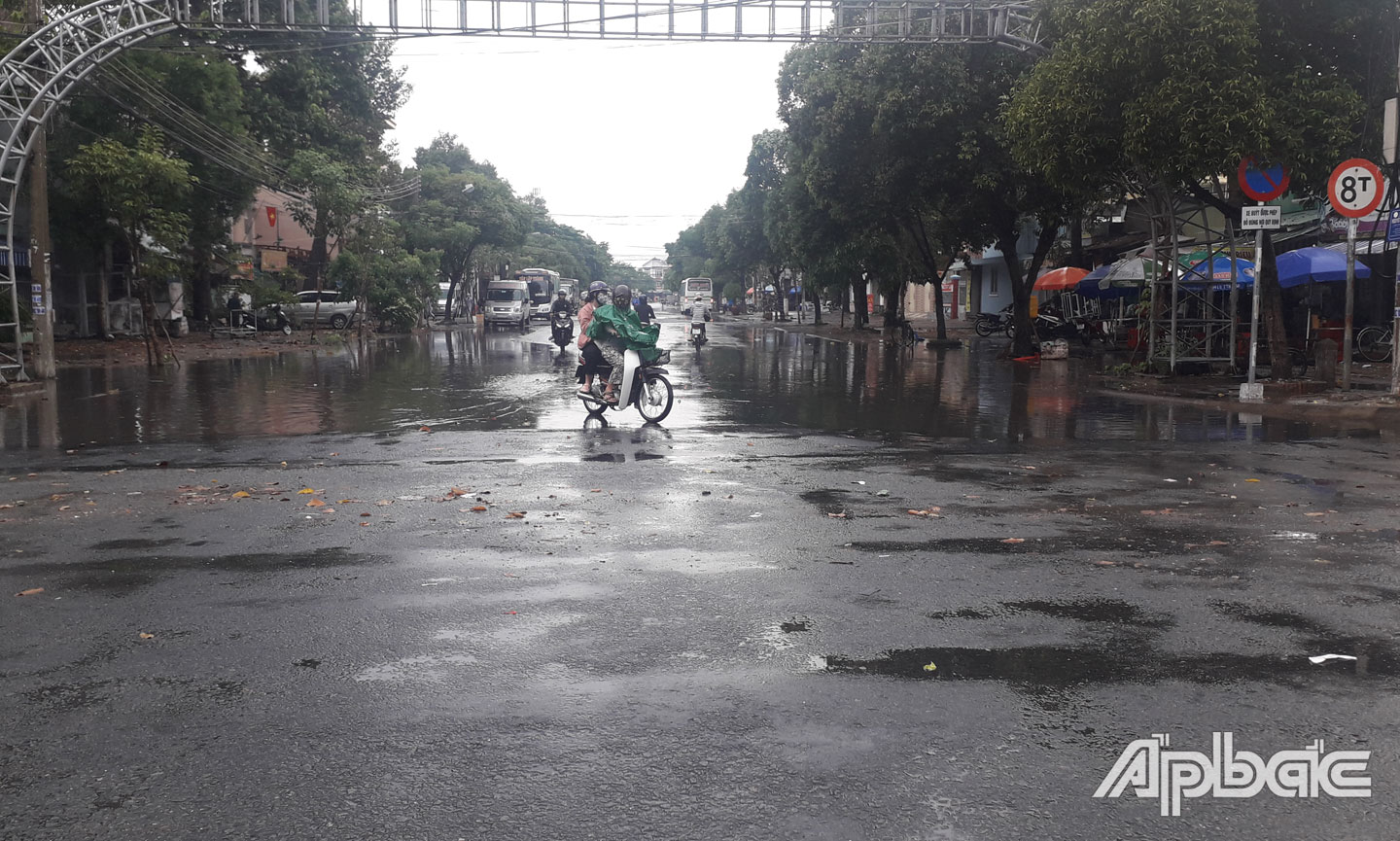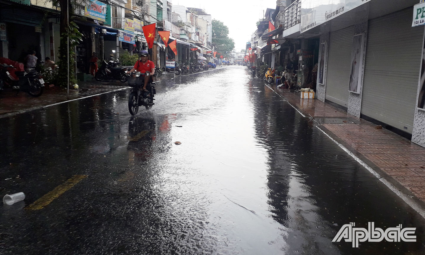 Đường Nguyễn Văn Nguyễn (phường 8, TP. Mỹ Tho) sau cơn mưa.
