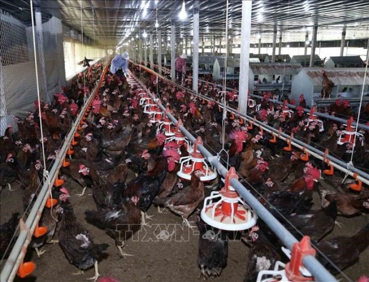 Người nuôi gà ở Trà Vinh đang thua lỗ do giá giảm mạnh. Ảnh: TTXVN