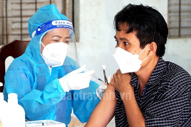 Tiêm vắc-xin phòng COVID-19 mũi 2 cho người dân xã Long Đức, thành phố Trà Vinh sáng ngày 11-12-2021.