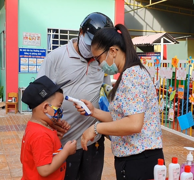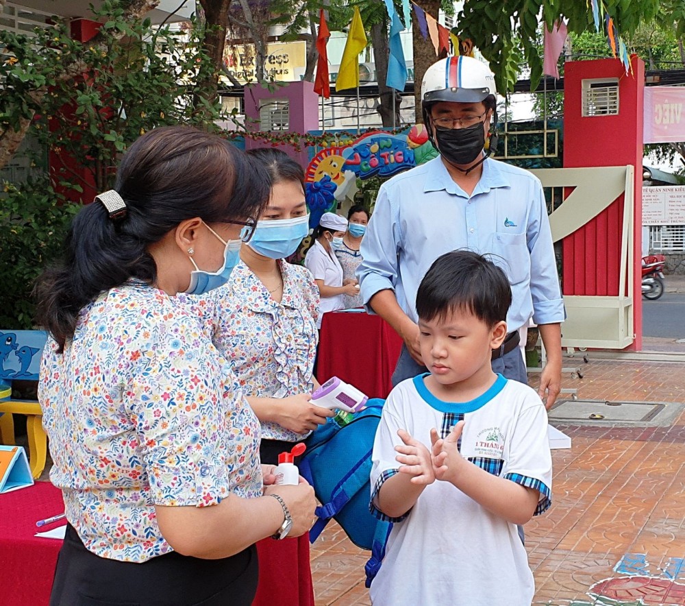 Các trường đều bố trí cán bộ, giáo viên, nhân viên đón, đo thân nhiệt, hướng dẫn trẻ rửa tay… trước khi vào lớp học, đảm bảo an toàn, an tâm cho trẻ cũng như phụ huynh.