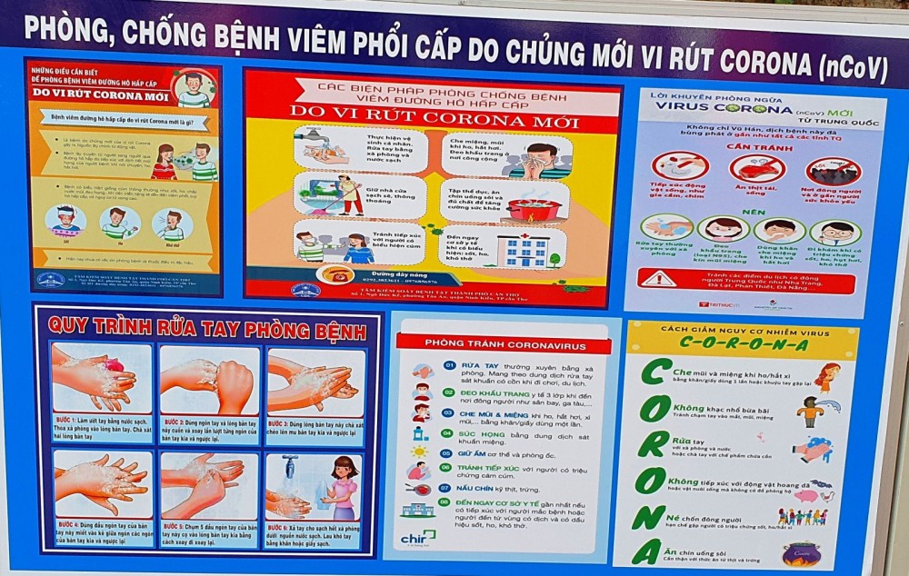 Tất cả các trường mầm non, mẫu giáo đều có pano, áp phích tuyên truyền phòng chống dịch bệnh COVID-19 đặt trong khuôn viên trường.