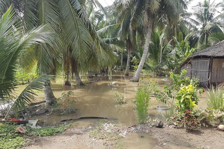 Triều cường gây ngập trên địa bàn huyện Cù Lao Dung. Ảnh: Thiện Hải