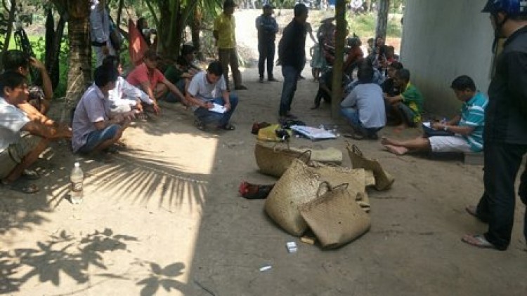 Lực lượng công an lập biên bản các đối tượng tham gia đá gà.