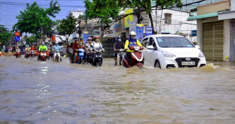 Do nước dâng cao, hàng trăm xe mô tô và một số ô tô đã tắt máy, nhiều xe mô tô phải nhờ xe kéo đến “giải vây” để không ách tắc giao thông.