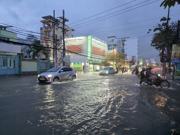 Đường Cách mạng Tháng 8, trung tâm TP Cần Thơ ngập sâu vào tối 22-10.