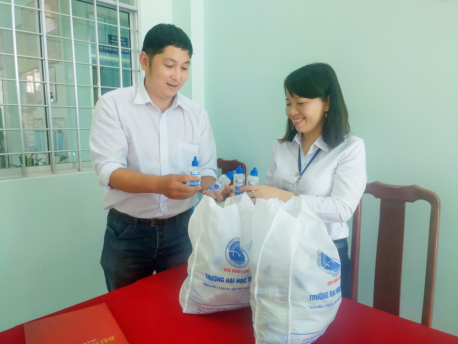 Ngày 13-2, bà Thạch Thị Dân, Phó Hiệu trưởng Trường Đại học Trà Vinh, cho biết cùng chung tay vì cộng đồng, đặc biệt trong tình hình dịch bệnh COVID-19, sinh viên và thầy cô giáo Khoa Hóa học ứng dụng của trường nghiên cứu và pha chế nước rửa tay khô sát khuẩn để phát cho học sinh, sinh viên và người dân có hoàn cảnh khó khăn, các gia đình chính sách trên địa bàn tỉnh Trà Vinh.