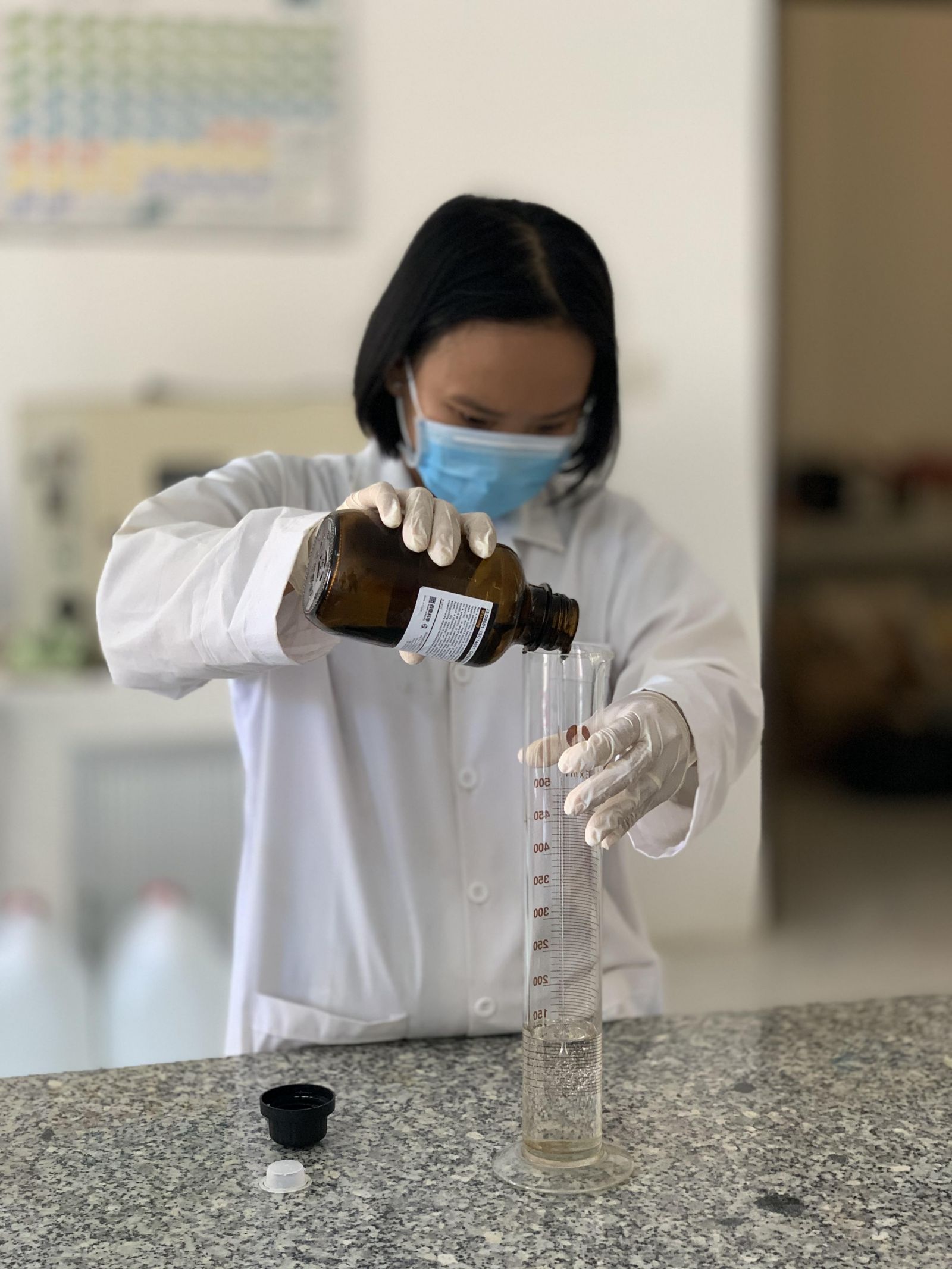 Điều chế nước rửa tay tại Trường Đại học Trà Vinh.