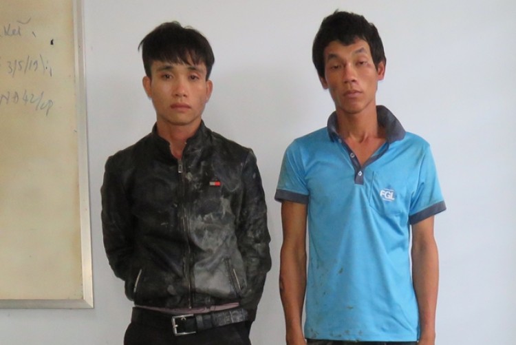 Hai thanh niên bị bắt giữ cùng tang vật.