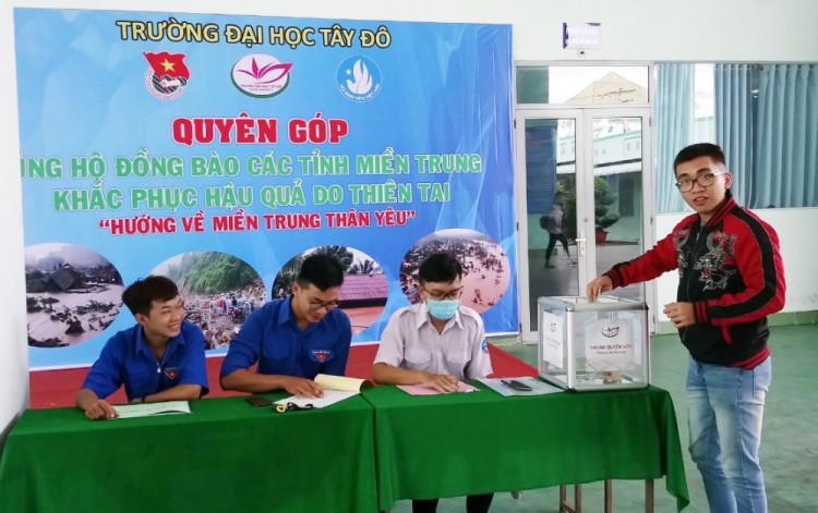 Ngày 20-10, Đoàn - Hội Sinh viên Trường Đại học Tây Đô phát động đợt quyên góp ủng hộ đồng bào các tỉnh miền Trung khắc phục hậu quả do thiên tai. Ngay khi phát động, nhiều cán bộ, sinh viên tích cực đóng góp tiền, thuốc men chuyển đến bà con miền Trung. Theo anh Nguyễn Phạm Quốc Anh, Phó Bí thư Đoàn trường, thời gian quyên góp từ nay đến hết ngày 31-10-2020.